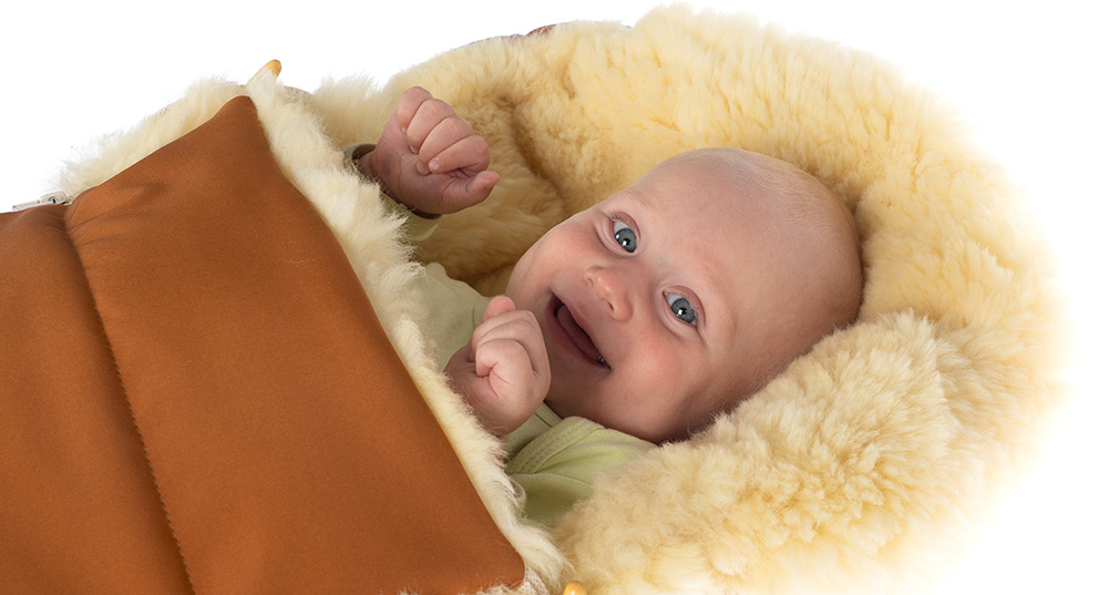 Dětské fusaky do kočárku z ovčí vlny s beránkem. Fusak do kočárku dítěti zaručí příjemný pocit díky ovčí vlně, která odpuzuje vlhkost a hřeje suchým teplem. Pro chladné dny máme v sortimentu rukávníky na kočárky z ovčí vlny.